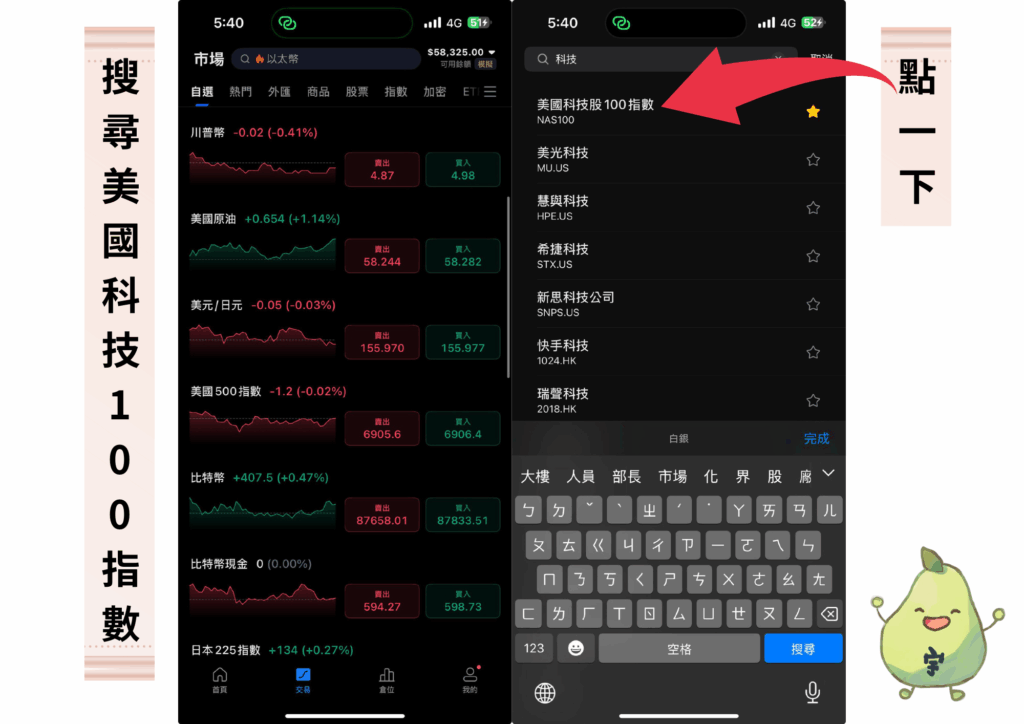 一樣先打開Mitrade的APP搜尋QQQ,並依照剛剛指數的買法即可完成購買!